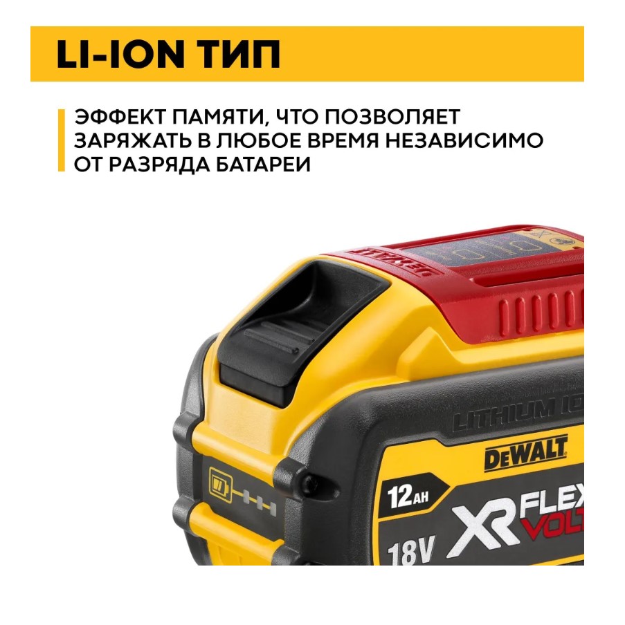 Аккумуляторная батарея 18/54 В, Li-Ion, 12.0 Ач DEWALT XR FLEXVOLT DCB548 предназначена для использования с садовой техникой и с мощными аккумуляторными инструментами DEWALT напряжением 54 В, а также совместим с инструментами напряжением 18 В.