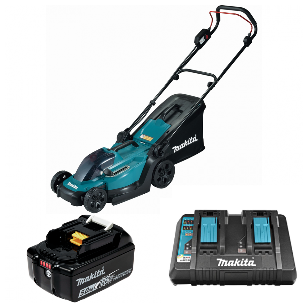 MAKITA DLM330PT — мощная газонокосилка с питанием от аккумуляторной батареи, которая с режущей декой шириной 33 см подходит для газонов площадью до 450 м2. Центрально регулируемые колеса на 8 высотах обеспечивает хорошую маневренность на газоне. Для компактного хранения снабжена складной ручкой. Высота среза составляет от 20 до 75 мм.