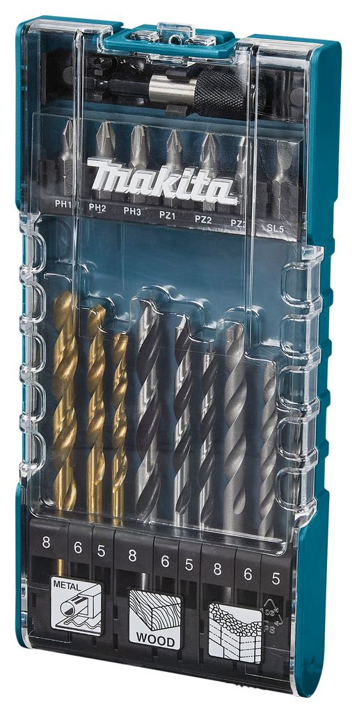 —Набор сверл и бит 17 шт. (биты 25мм 7шт.;битодержатель;дерево/металл/бетон -5,6,8 мм) Makita D-74887