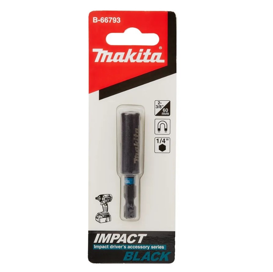 Магнитный держатель бит Makita B-66793 для ударных и безударных шуруповертов. Предназначен для быстрой смены насадок без применения дополнительного инструмента. Хвостовик 1/4", длина 60 мм. Черное покрытие предотвращает образование ржавчины. Встроенный в корпус удлинителя магнит обеспечивает надёжное удержание насадки в процессе работы.