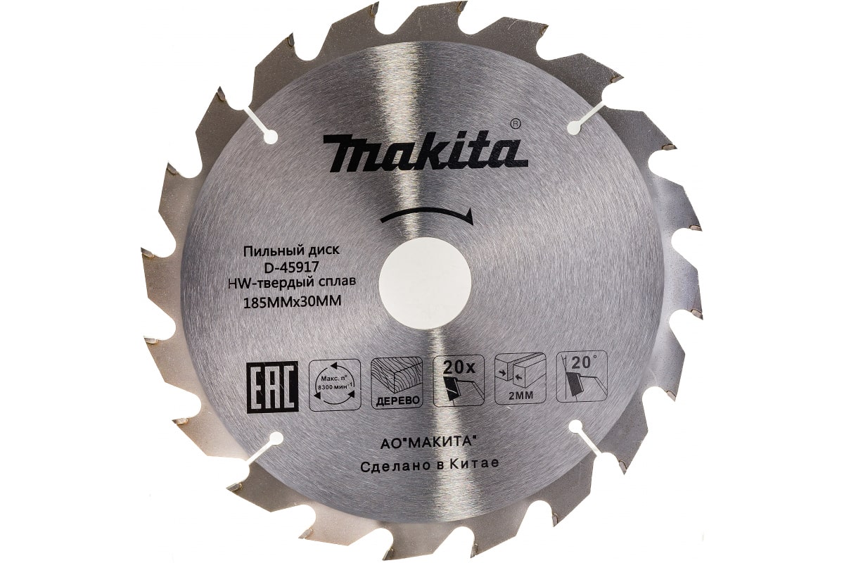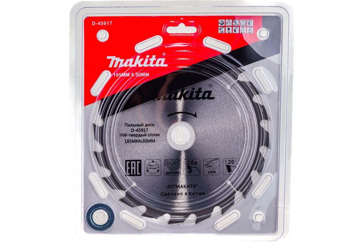 Пильный диск по дереву Makita D-45917 используется в работе с дисковой электропилой. Применяется для пиления древесины, фанеры, шпона, ДВП, ДСП. Твердосплавные пластины на зубьях существенно продлевают ресурс работы диска. В комплекте с диском идут переходные кольца на 16 и 20 мм.