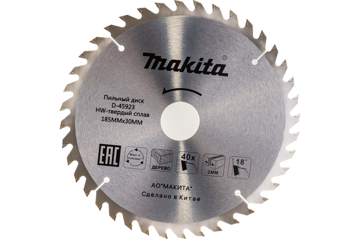 Пильный диск с твердосплавными напайками для резки древесины бюджетной серии, Makita D-45923 предназначен для дисковых и торцовочных пил.