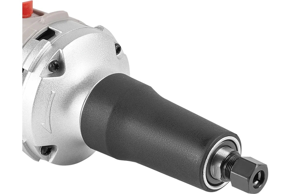 Металлический корпус редукторной части обеспечивает хорошее охлаждение прямошлифовальной машины при длительной эксплуатации.