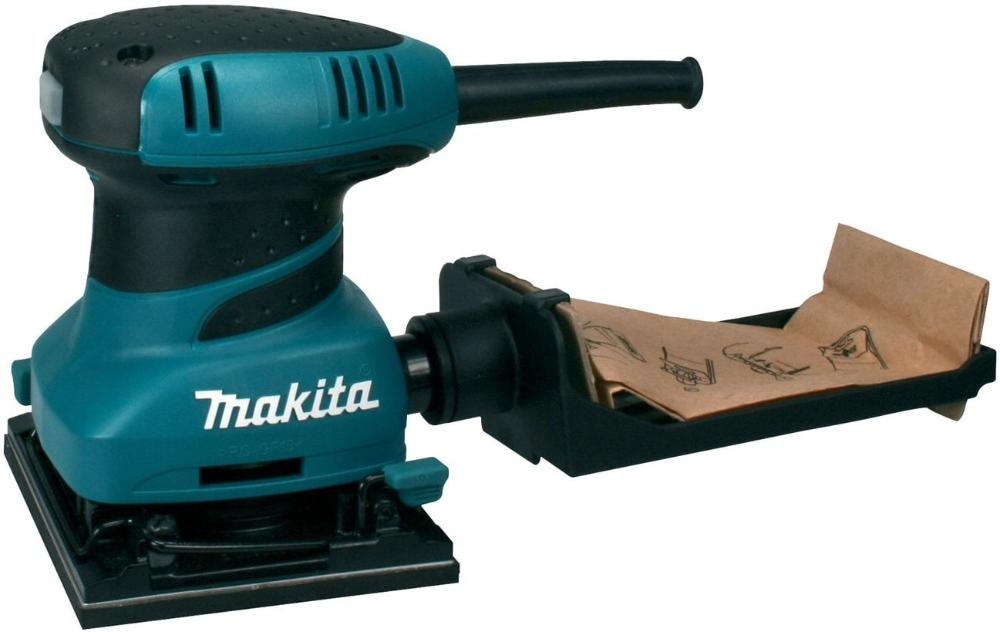Удобная форма рукоятки вибрационной шлифмашины Makita BO 4555 исключает чрезмерное напряжение кисти, а резиновая поверхность обеспечивает надежное удерживание инструмента. Включатель, находящийся на рукоятке, защищен от пыли.